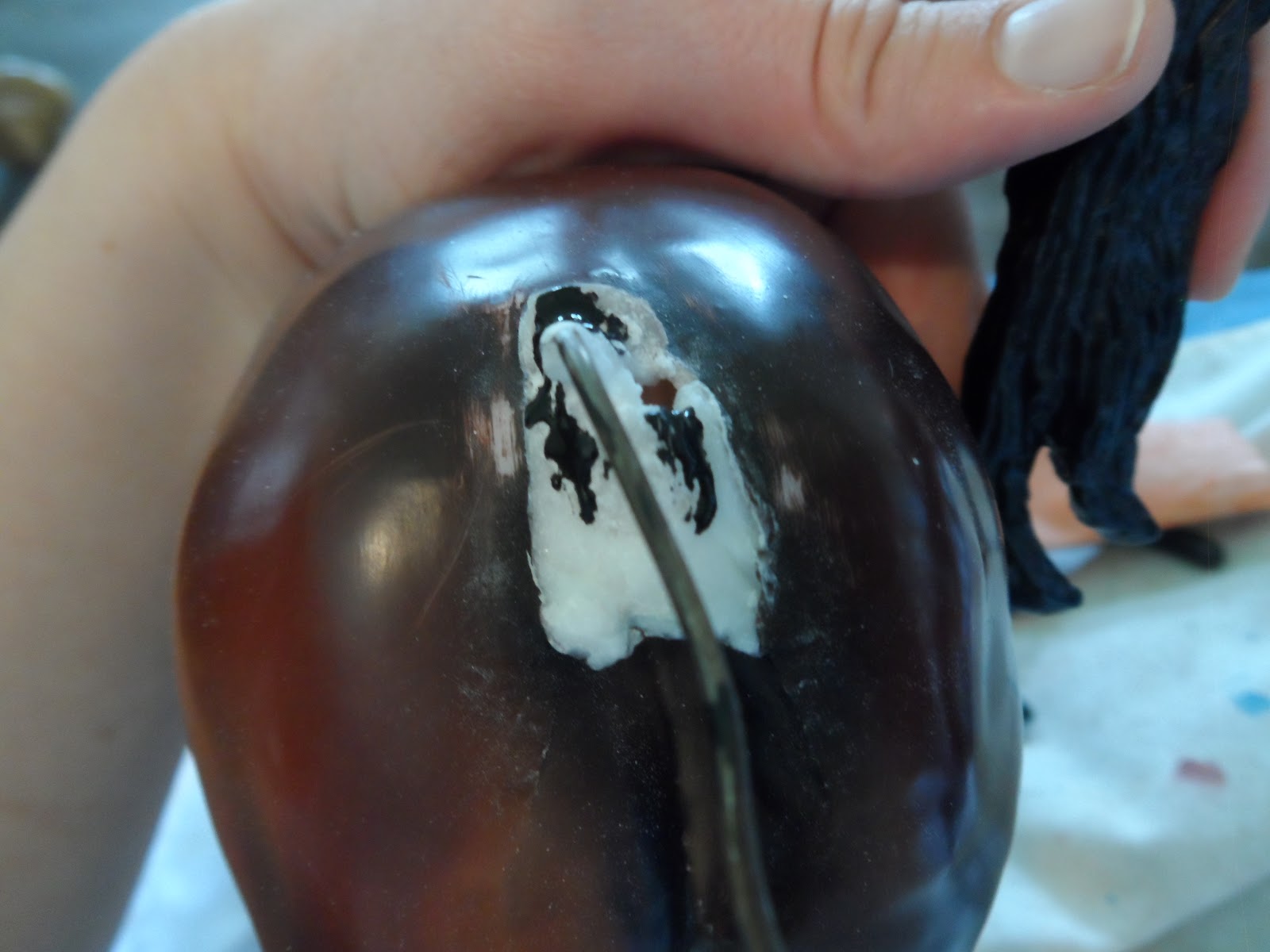 First I put baking soda and glue on the tail to make sure that it was secure.